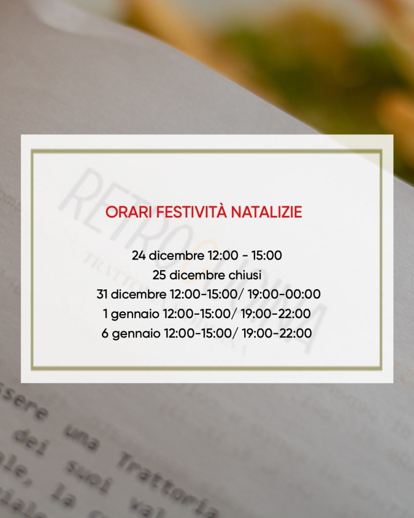 Orari per le Festività da RetroCucina