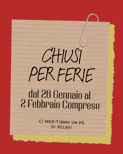 Dal 26 Gennaio al 2 Febbraio Incluso siamo in Ferie!